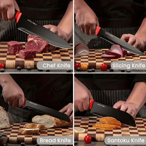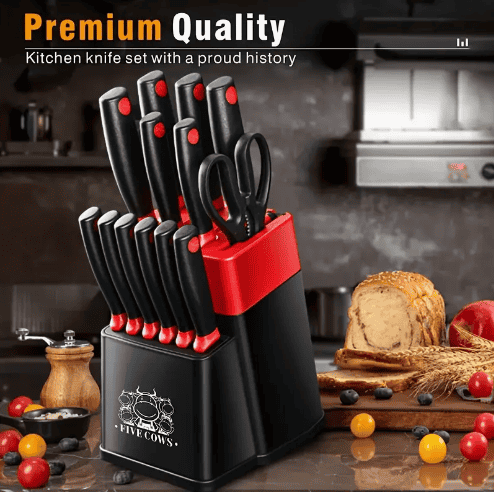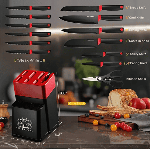 Transform your cooking experience with our sleek and powerful 14-Piece Black & Red Kitchen Knife Set. Designed for both everyday cooks and professional chefs, this set combines sharp performance, comfortable handling, and stylish design to help you create delicious meals with confidence.