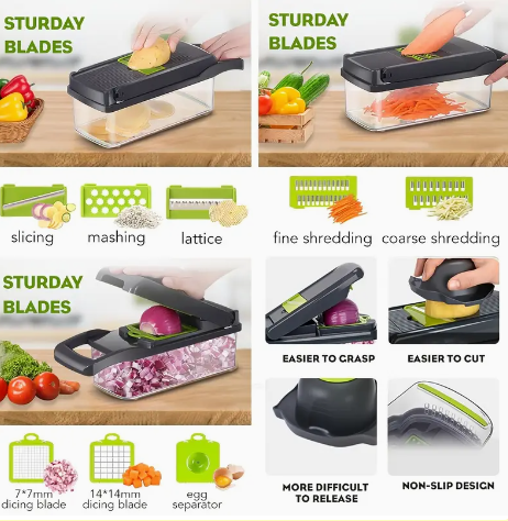Say goodbye to tedious chopping and hello to quick, effortless meal prep! This multi functional chopper set slices, dices, grates, and shreds in seconds—perfect for home chefs and busy kitchens.