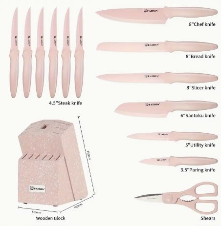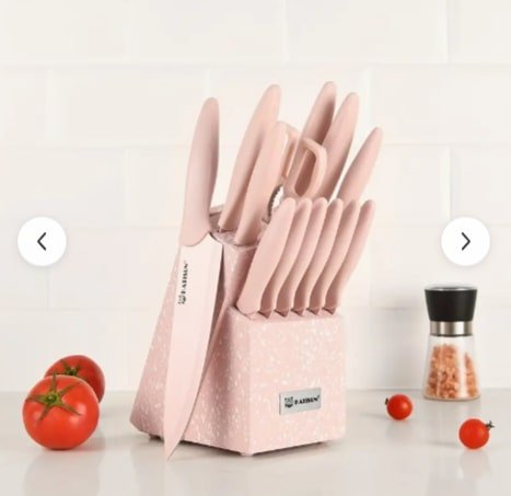 Bring a pop of elegance to your cooking space with our 14-Piece Pink Chef Knife Set. Designed for both professional chefs and home cooks, this set combines stunning aesthetics with exceptional functionality. Each knife is forged from high-carbon stainless steel for long-lasting sharpness, while the ergonomic handles ensure comfort and control. The included wooden block keeps your collection organized and within easy reach.