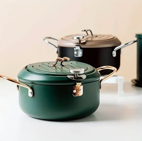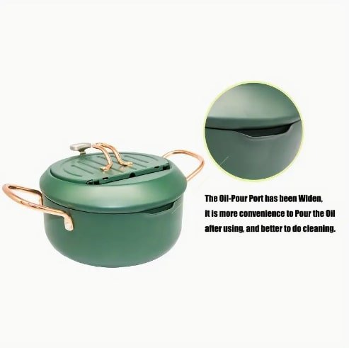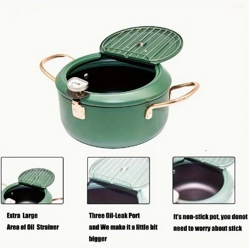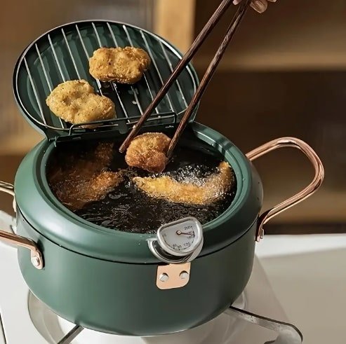 Deep Green Japanese-Style Tempura Frying Pot – Perfect for Crispy & Healthy Cooking